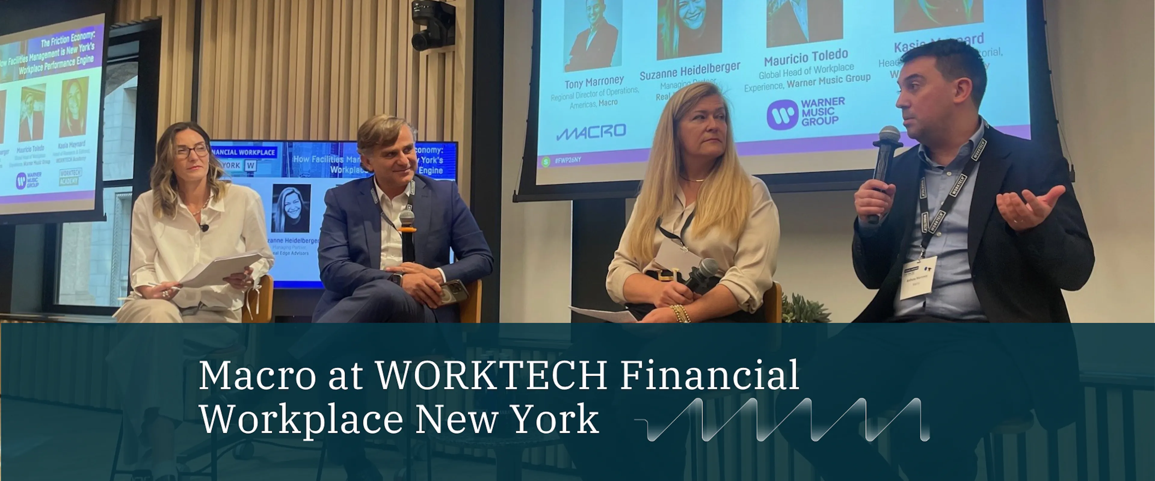 Macro contributed to a lively fireside chat titled “The Friction Economy: How Facilities Management is New York’s Workplace Performance Engine”